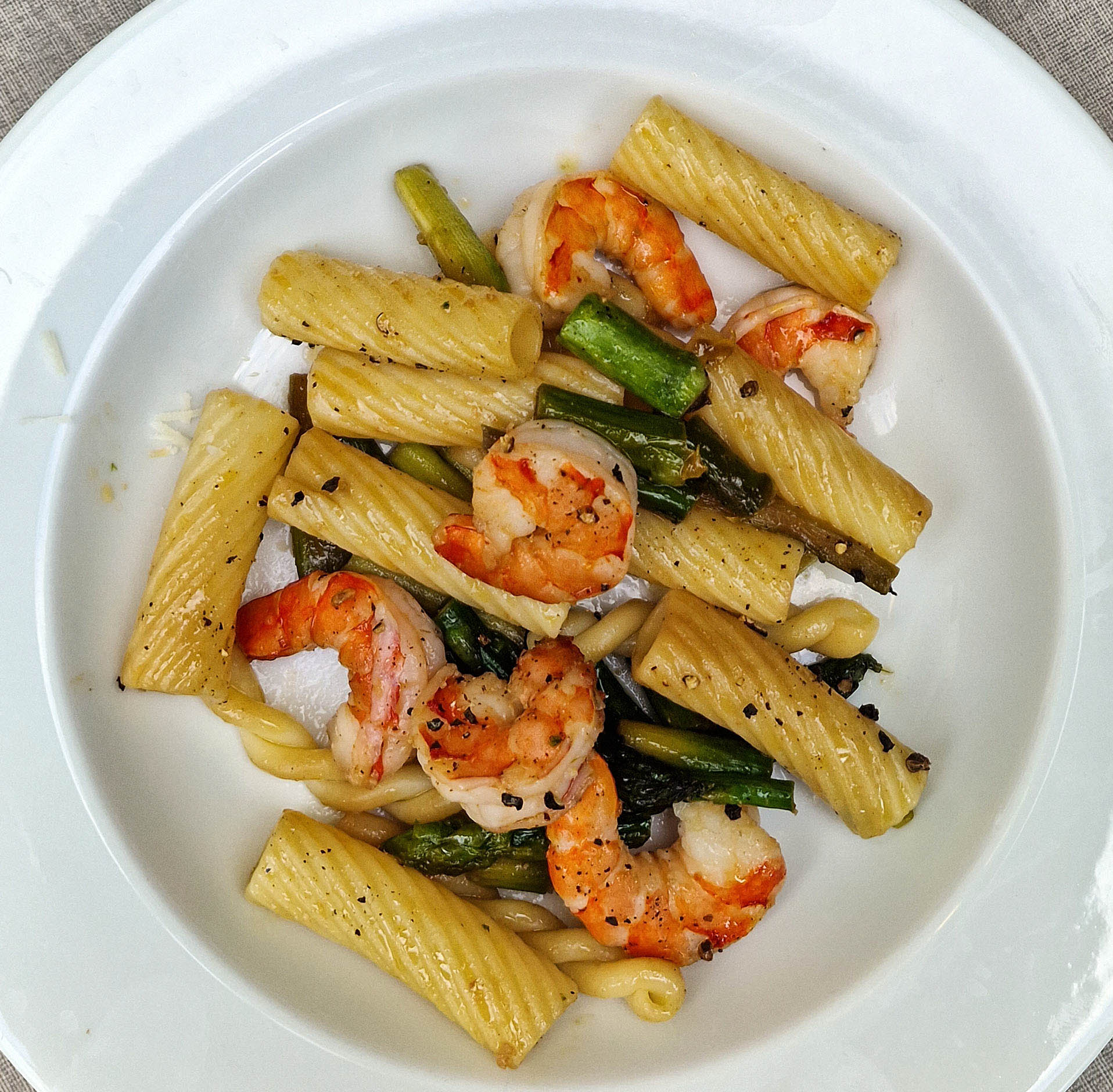 Pasta mit grünem Spargel und Garnelen